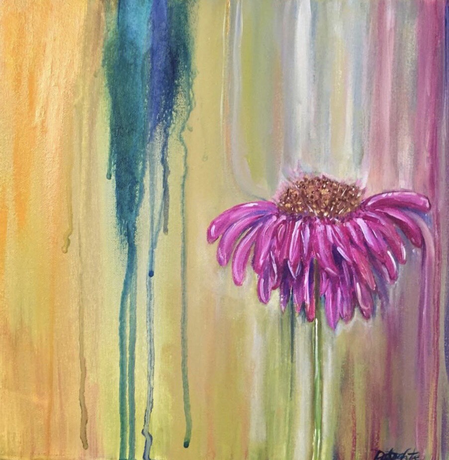 I finished the painting off by topping the center of the daisy with specks of metallic gold paint. Once again to depict the glory of God. The Lord had taken me through the storm and deposited his glory on me like a crown. My flower was standing tall and strong, vibrant with the glory of God adorning its crown. It was indeed facing toward heaven overflowing with joy. I couldn’t help but to weep upon the completion of this piece because I saw me. I had bloomed after the pain. I had bloomed “after the rain”. To this day this painting evokes so many emotions and feelings in me and in other people when they see it. I am mostly told how beautiful and inspiring it is. I am here to tell you it is possible to bloom again after the rain!